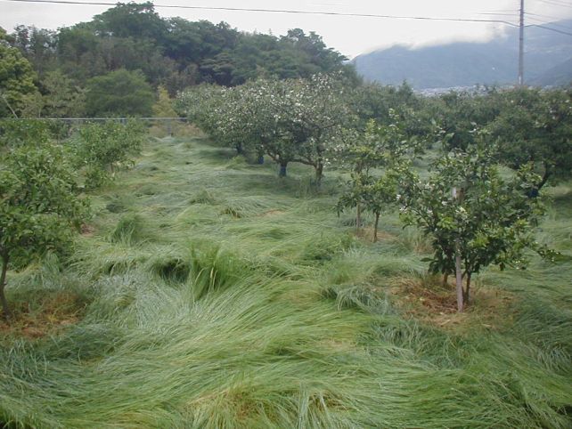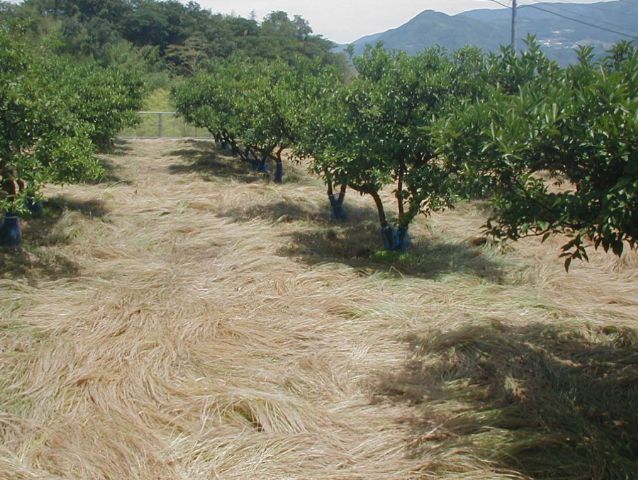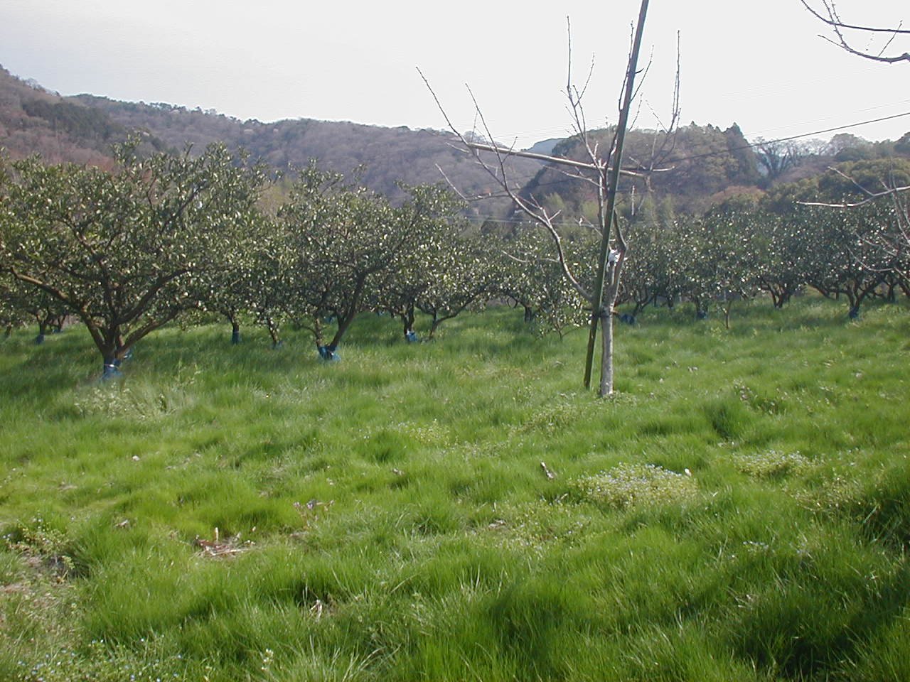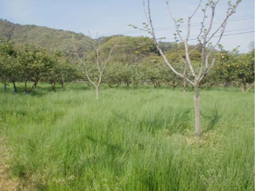 ナギナタガヤによる草生栽培は草刈NO、除草剤NO、手間いらづで環境にも良く、短所が見当たらない新有機農法です! |
