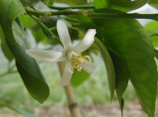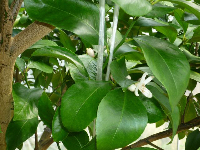 5)レモンは樹冠内部に花が多く着きやすく立派な果実が結果する。「平成21年5月12日」 |