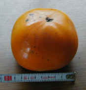 輪状の黒いスジが条紋で太秋柿の特徴です。 | ||||||