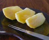 この商品は左画像のようなキズやシミ等があります、またヘ タが空いている物もありますが皮を剥けば中身は綺麗で甘味な どは他の商品と全く変わらず、ご家庭で召し上がるにはたいへ んお得な商品です。 |